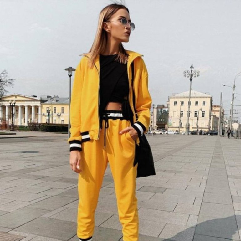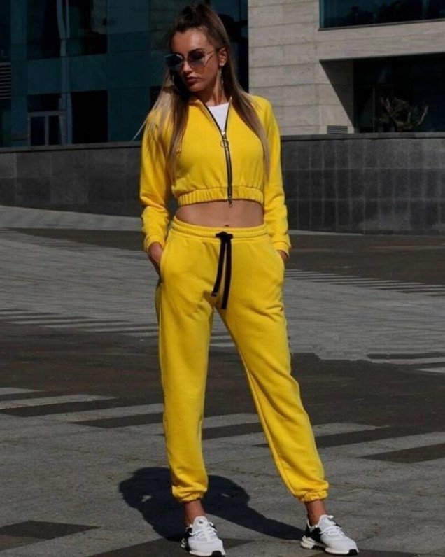 Горчичный спортивный костюмчик.