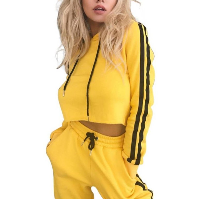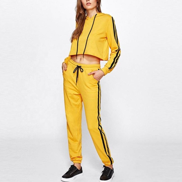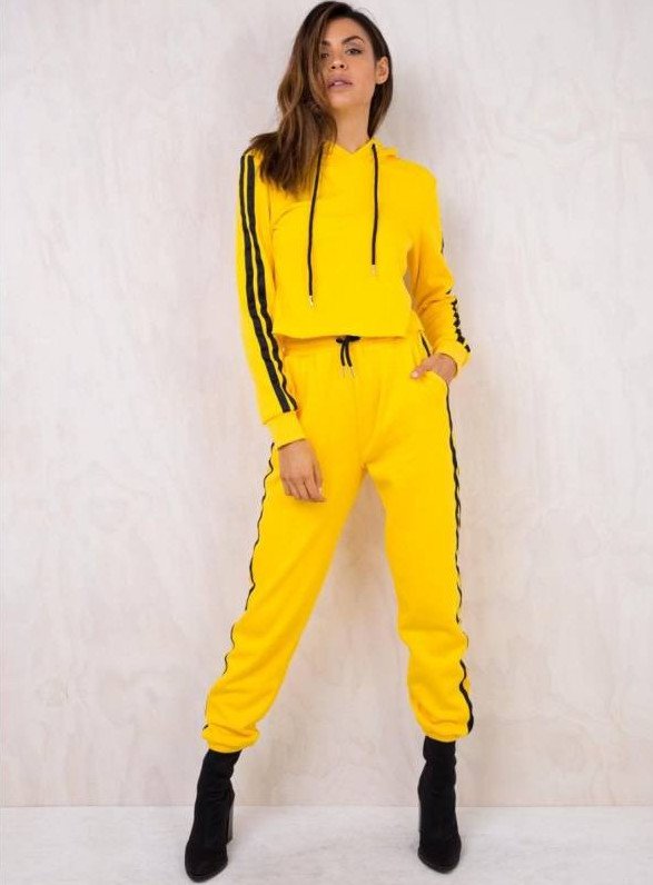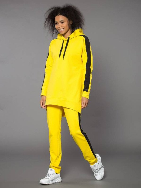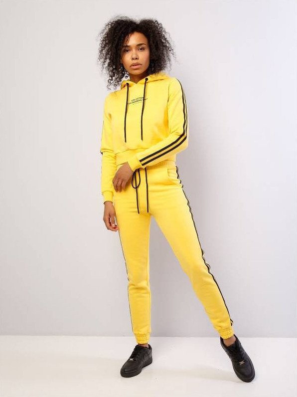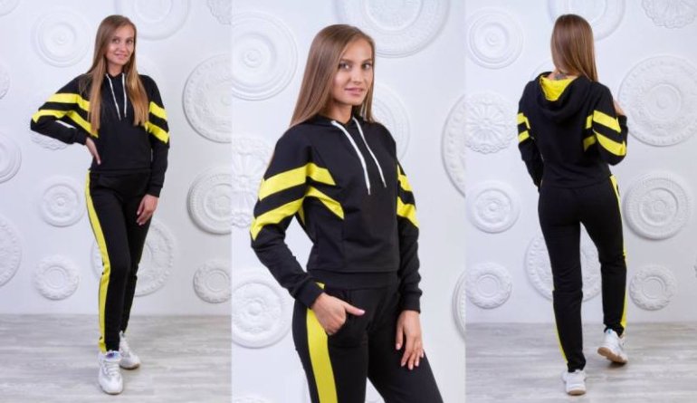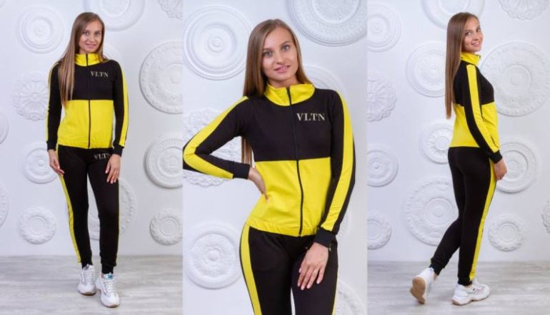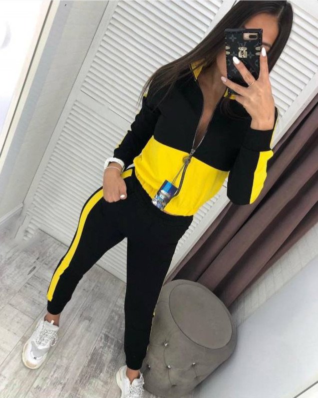 Спортивный костюмчик дамский чёрный с жёлтыми полосами.
