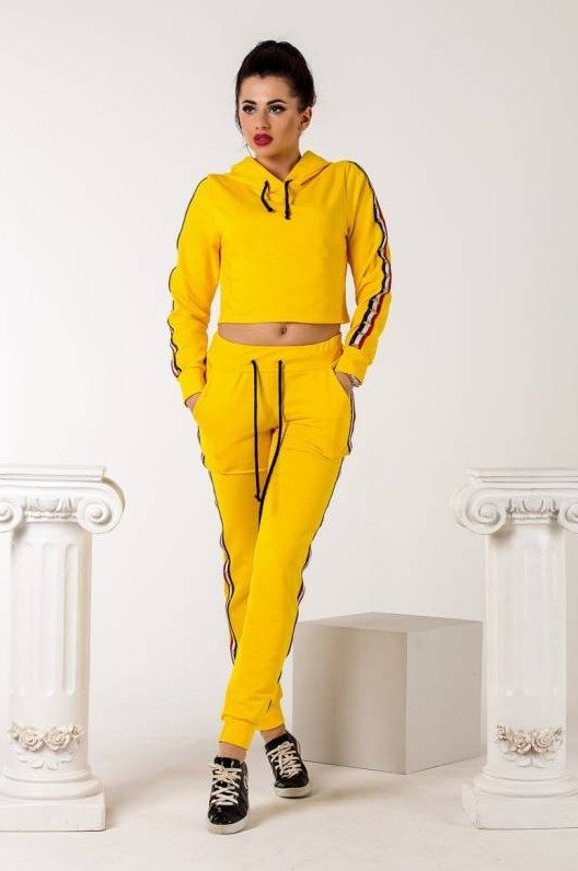 Спортивный костюмчик дамский желтоватый с черным.