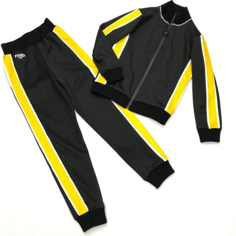 Черно желтоватый спортивный костюмчик.