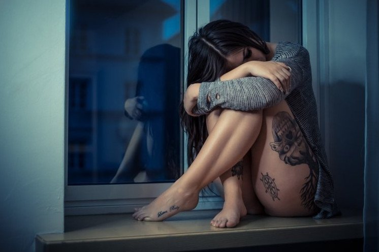 Девушка печалится.
