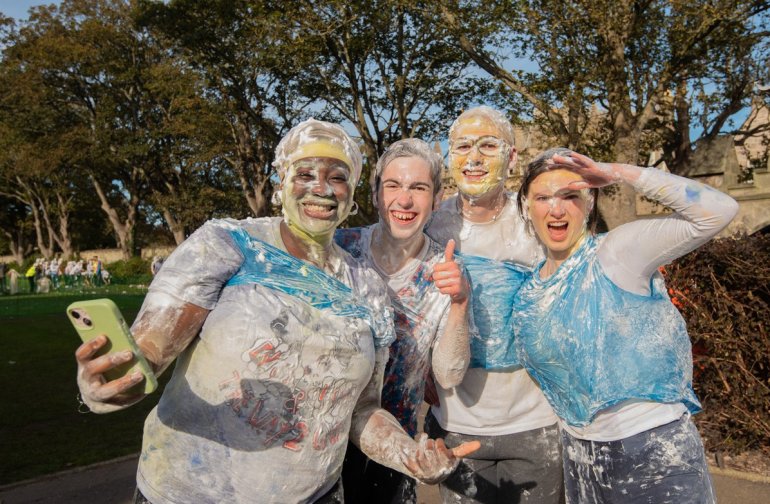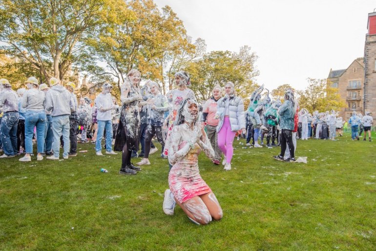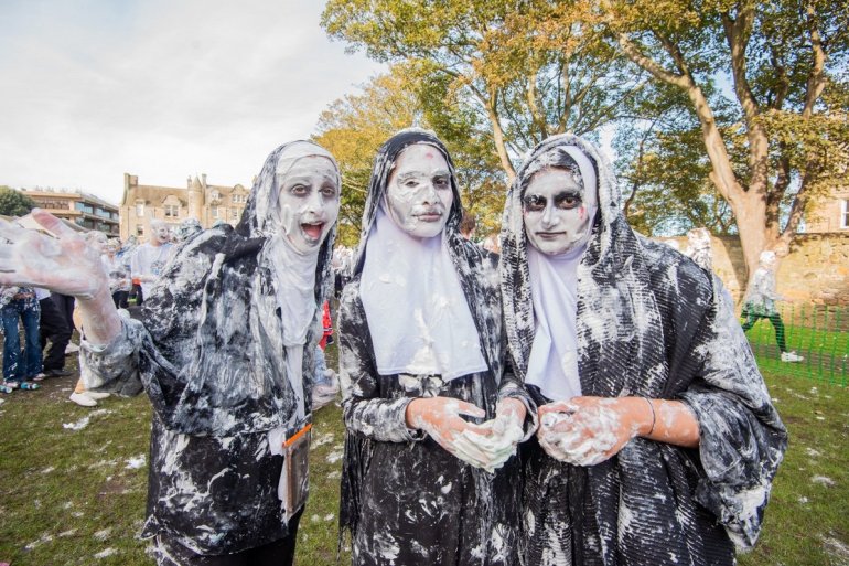 Традиционно они собираются вместе на "изюмный уикенд" в Файфе, названный так в честь традиции университета, согласно которой первокурсники дарят своим "родителям" фунт кишмиша в знак благодарности за то, что те приняли их и направили на следующий этап жизни.