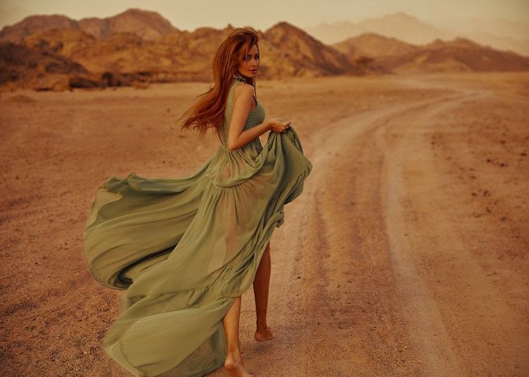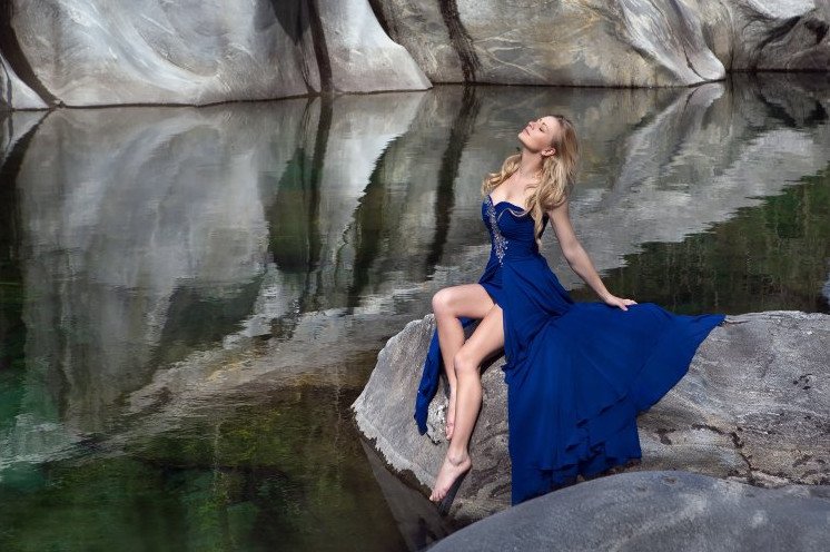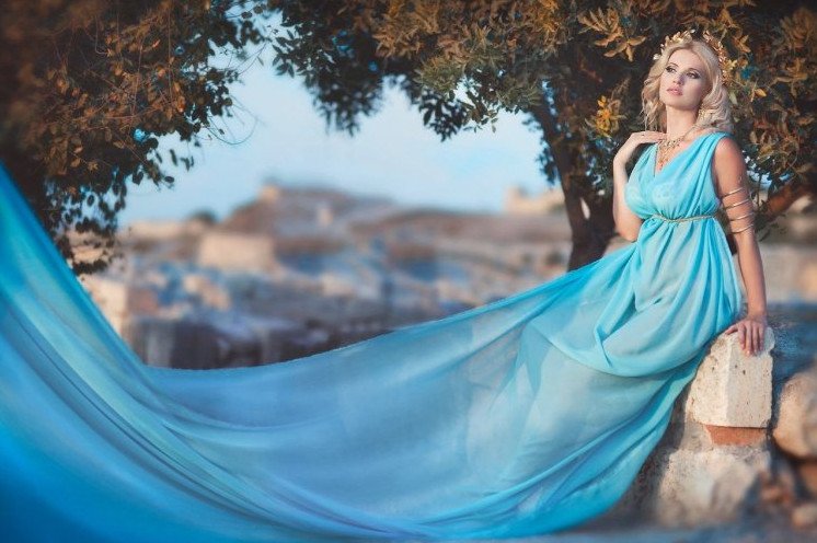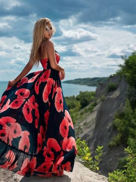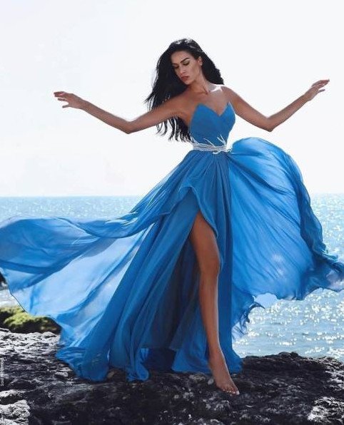 Прелестная красивая женщина в длинющем прекрасное платье.