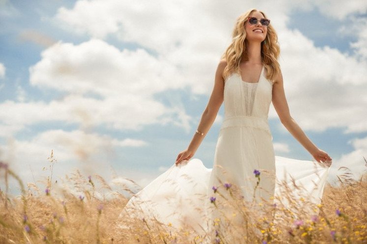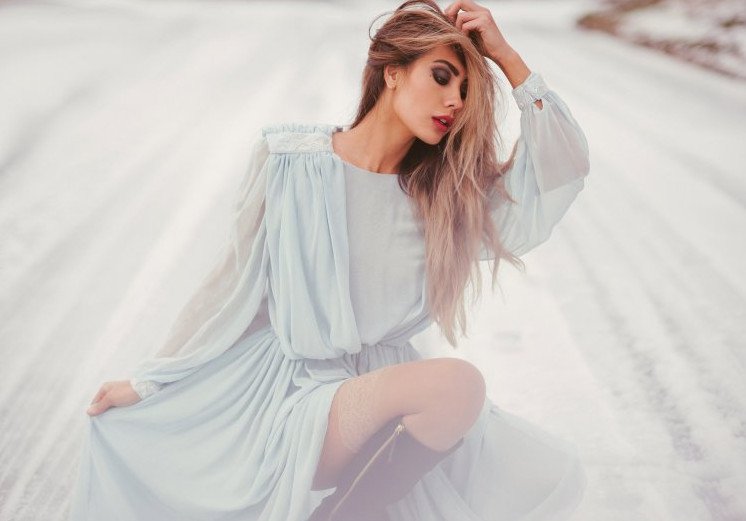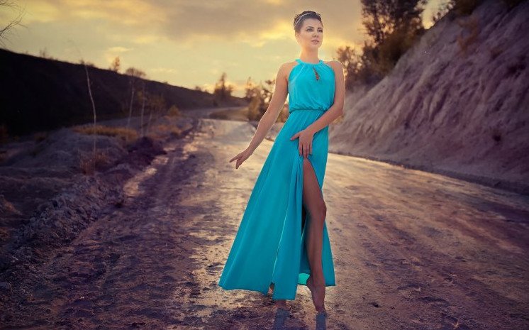 Красивая девушка в прекрасное платье с длинющими ногами.
