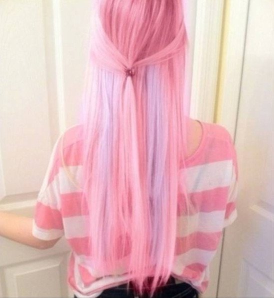 Нежно розовые волосы.