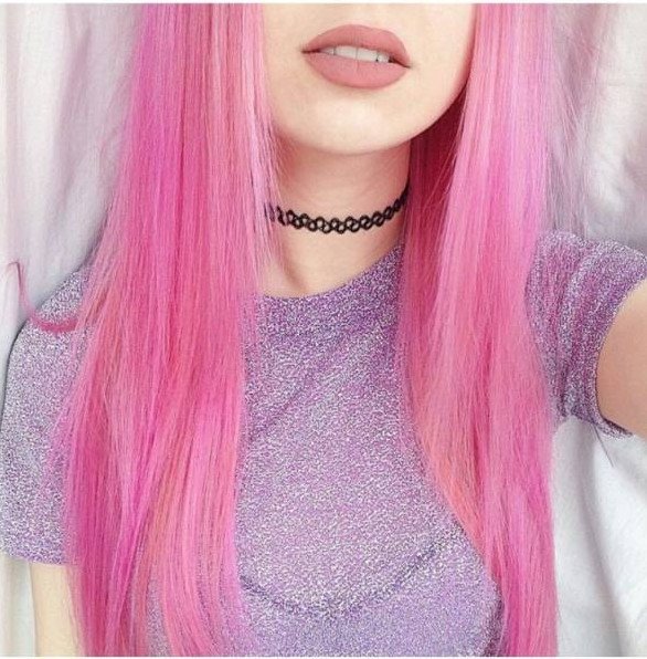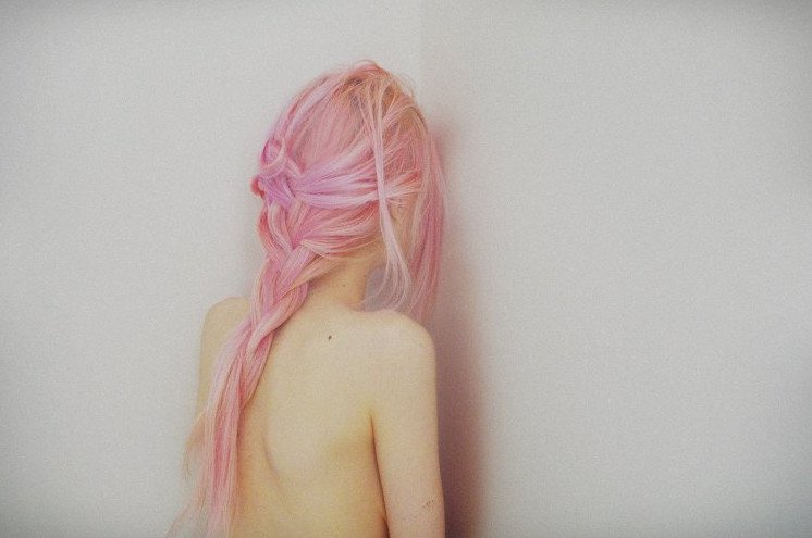 Розовые волосы.