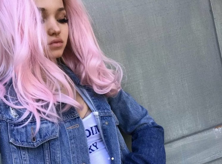 Hailie Barber розовые волосы.