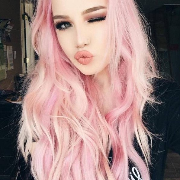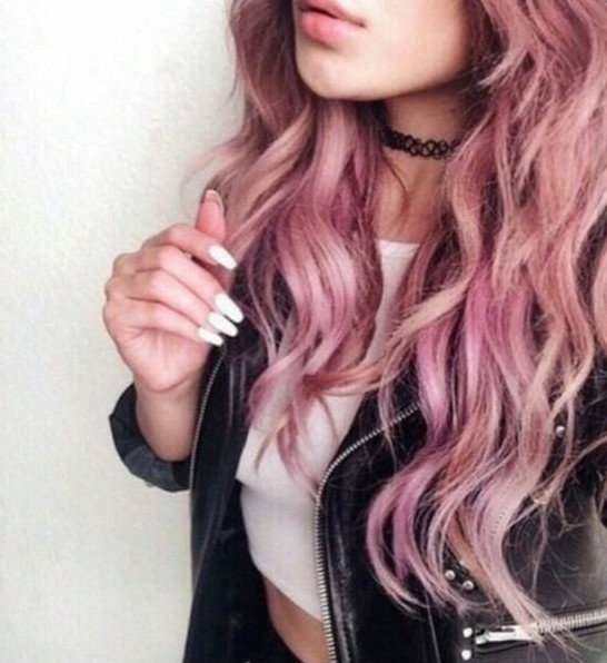Бледно розовые волосы.