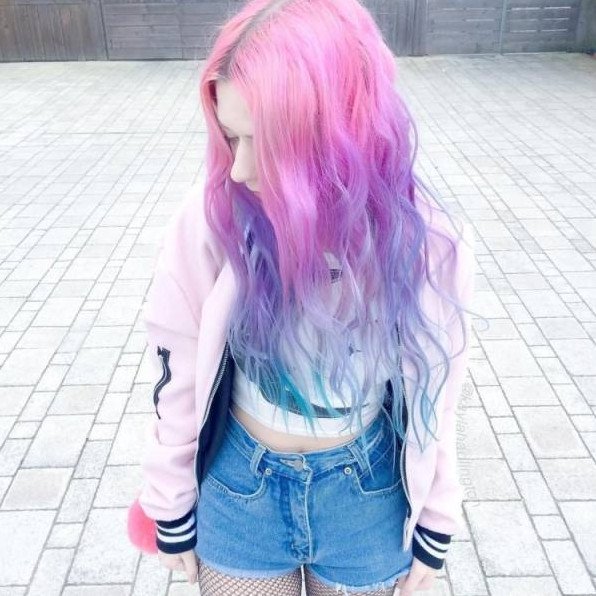 Розовоголубыве волосы.