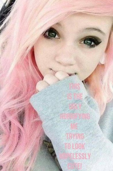 Девушка с малеханькими розовыми волосами.