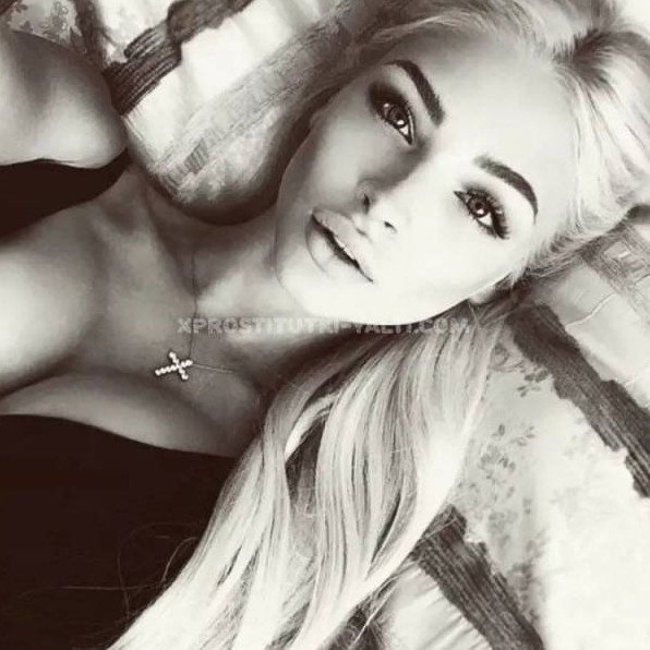 Блондиночка с нарощенными ресницами.