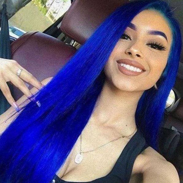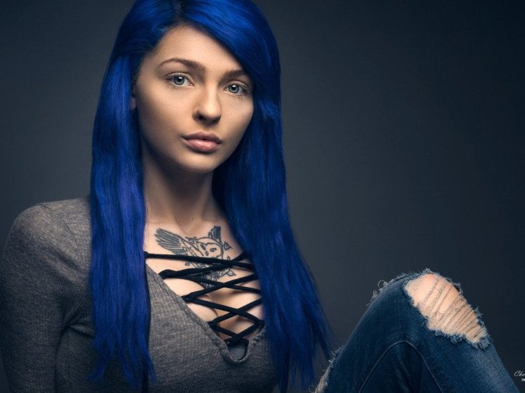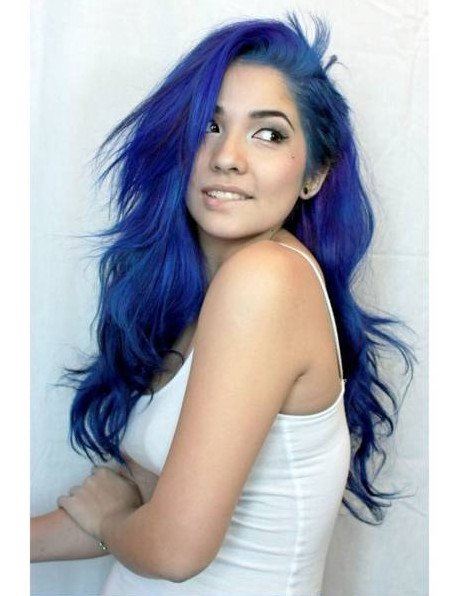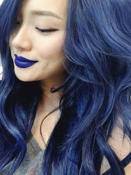 Темно голубые волосы девушка.