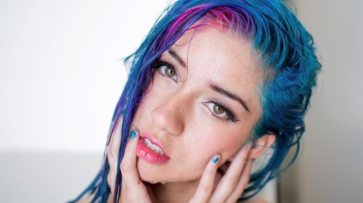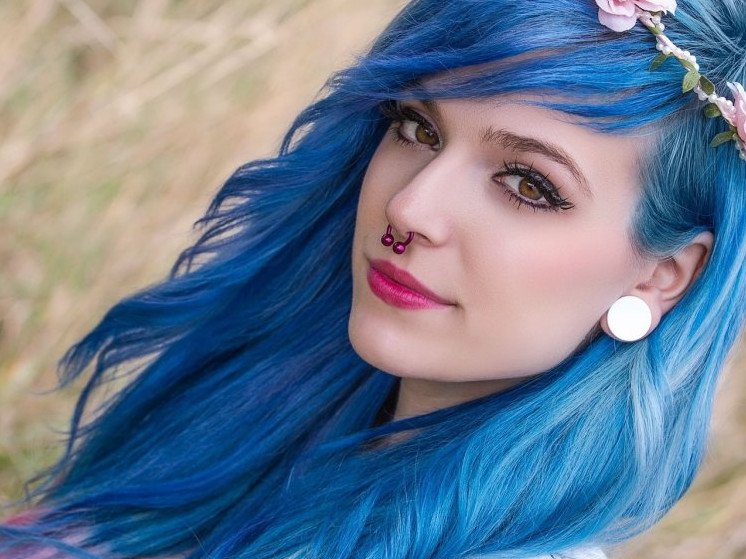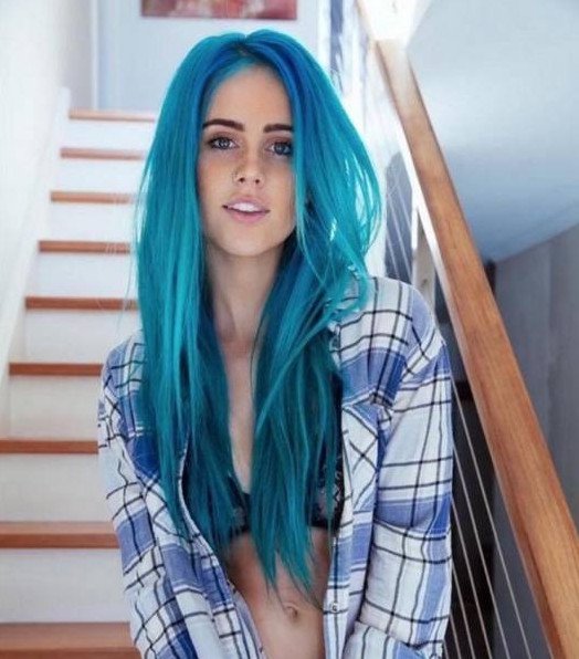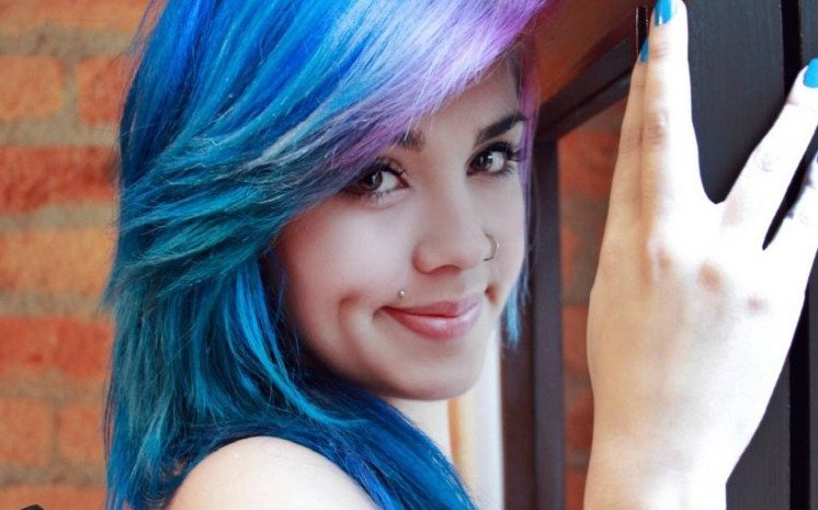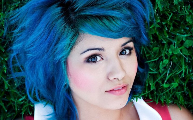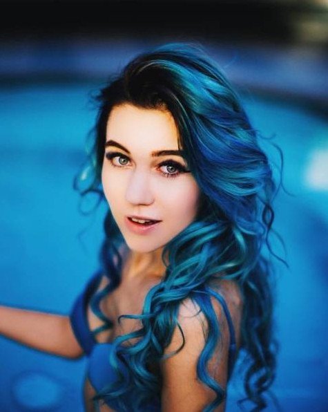 Кира Рауш с голубыми волосами.