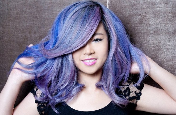 Волосы с фиолетовыми прядями.