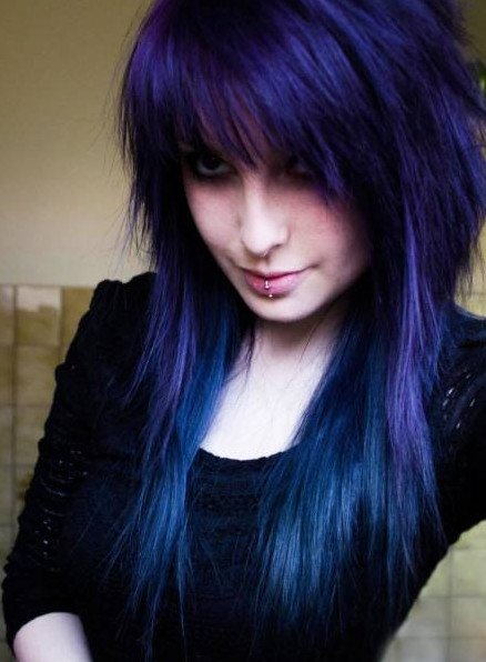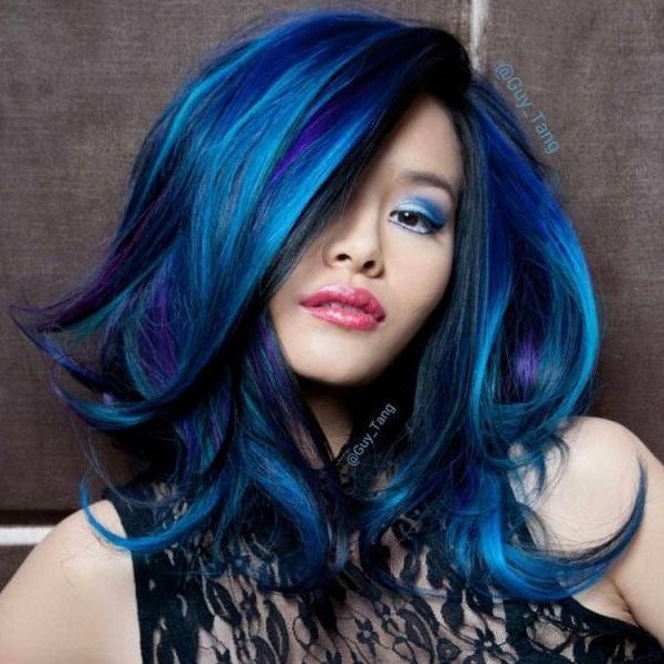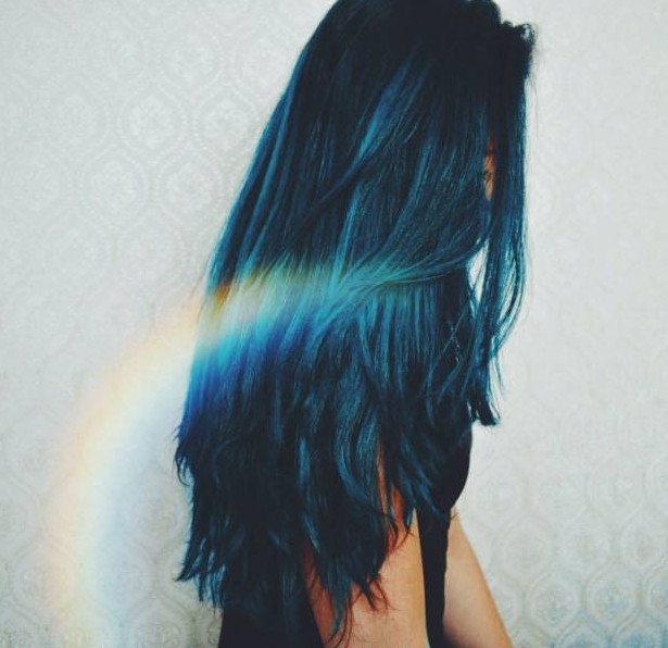 Черно голубые волосы.