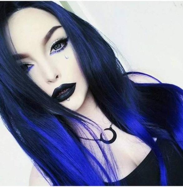 Черно голубые волосы восхитительные женщины.