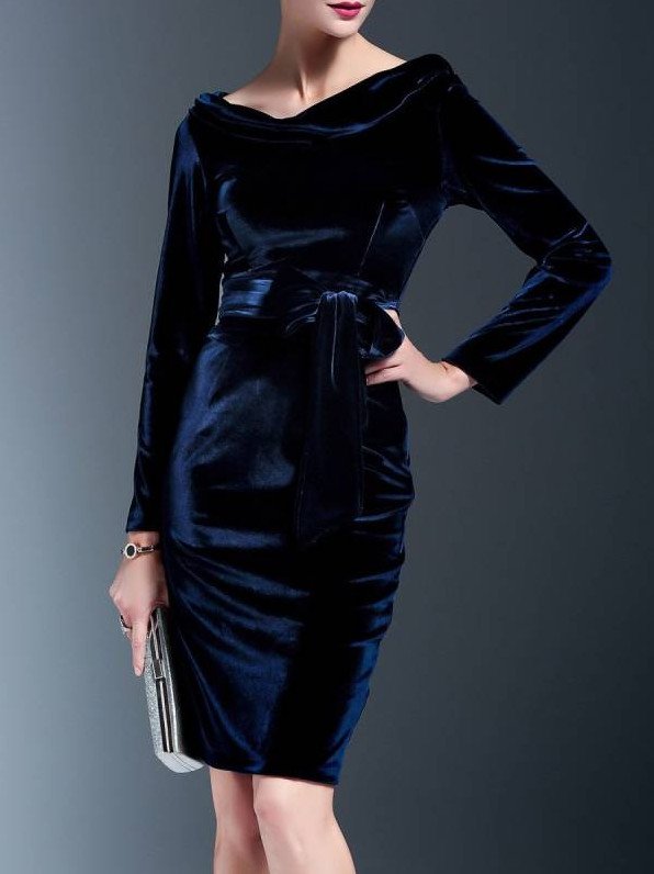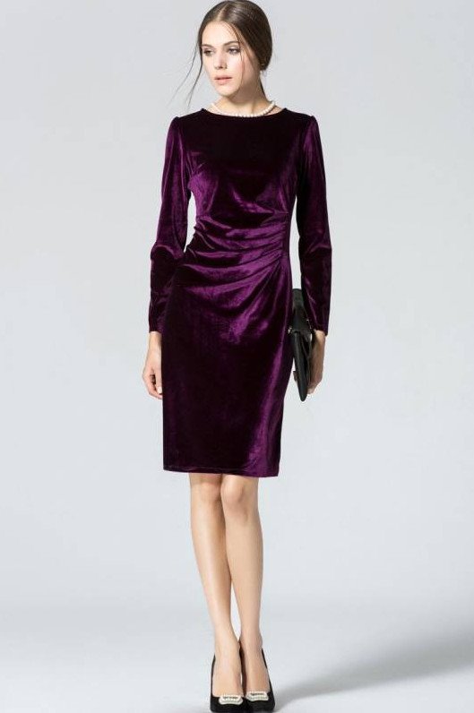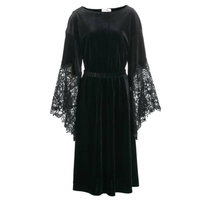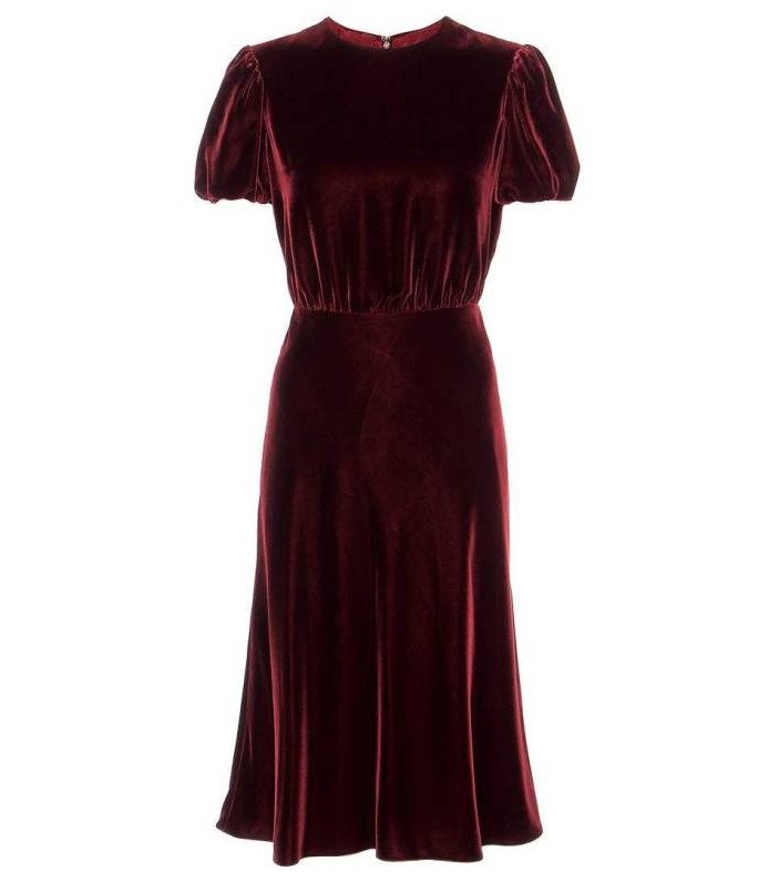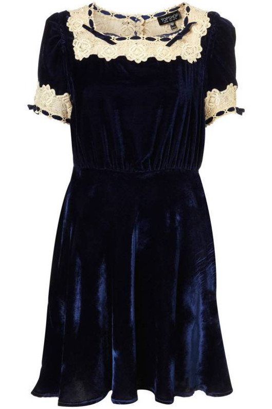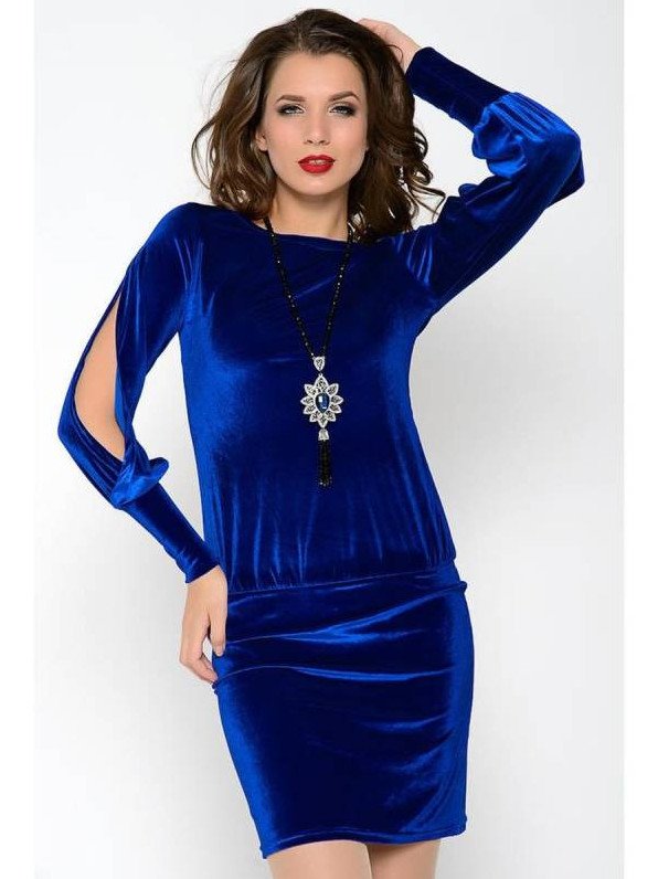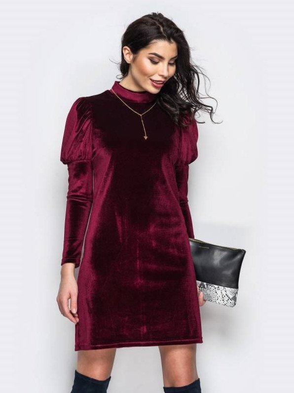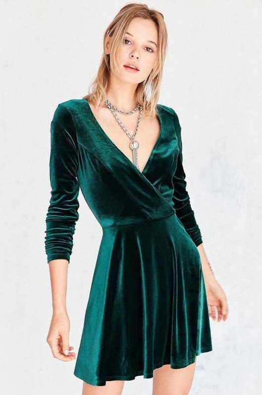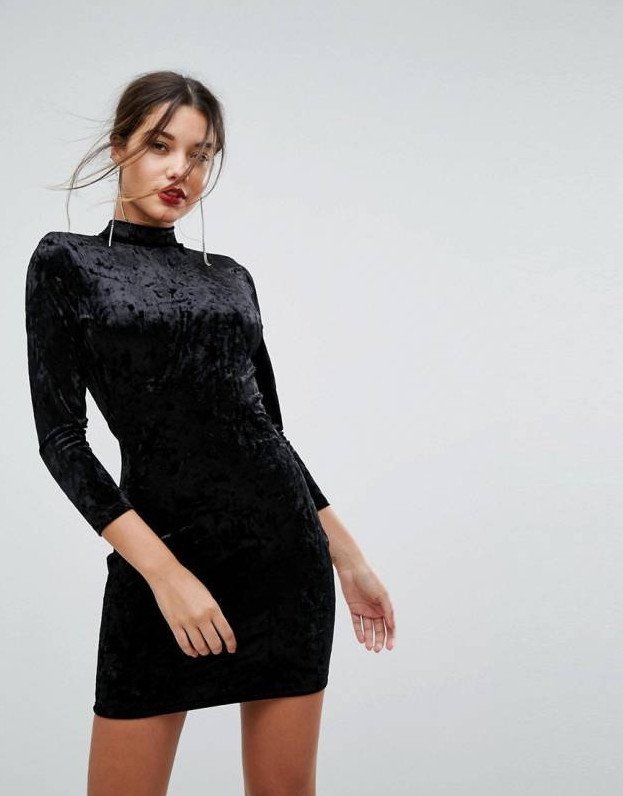 Темное бархатное платье мини с длинноватыми рукавами ASOS.