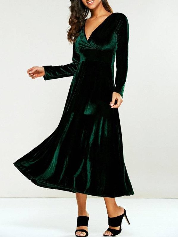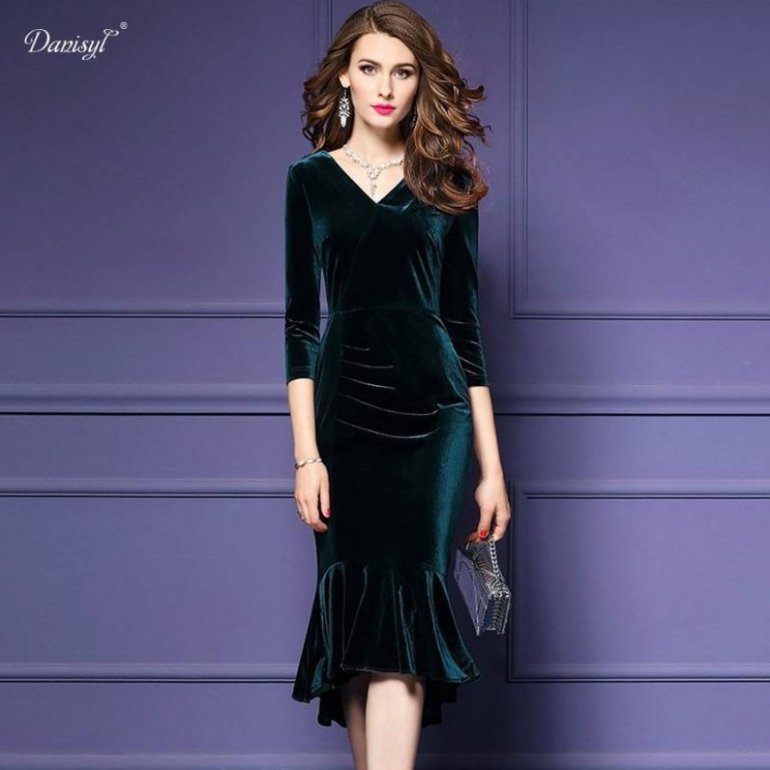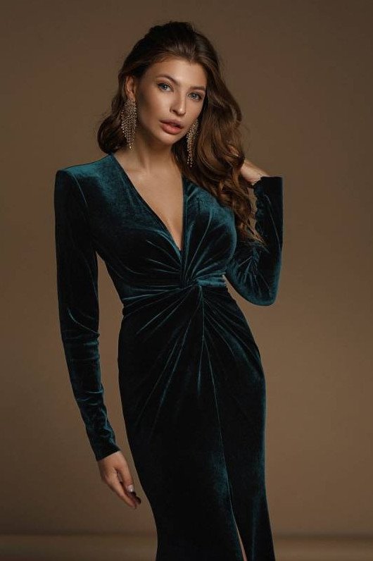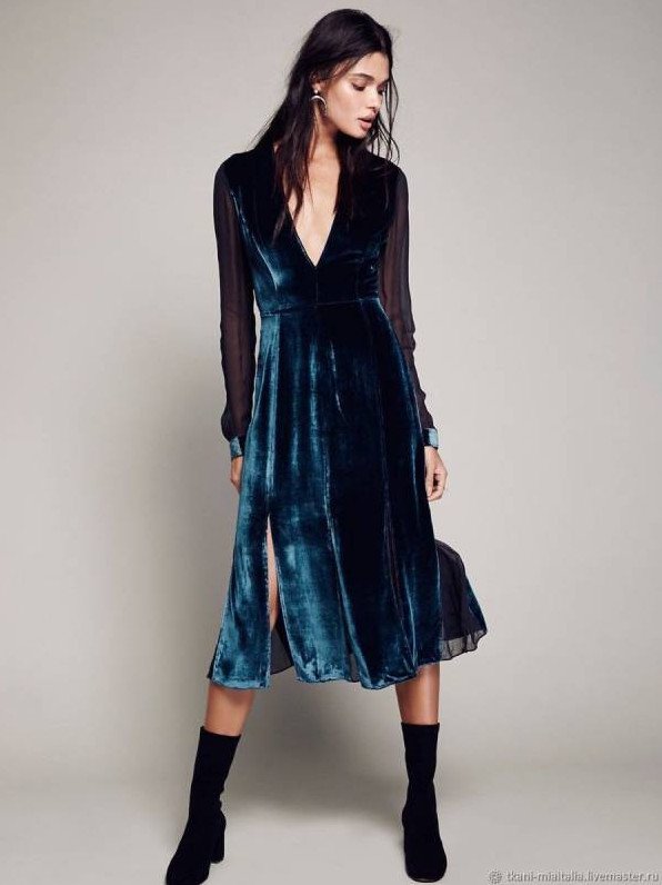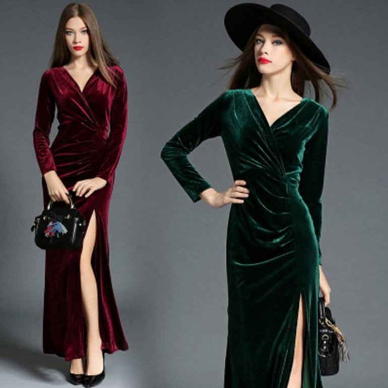 Вечерние вельветовые красивые платья зеленоватые макси.