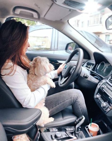 Девушка в машине с песиком.