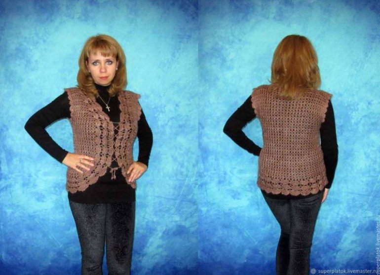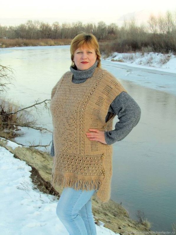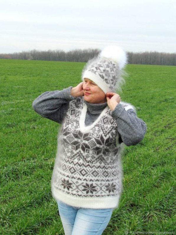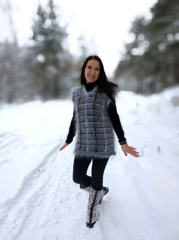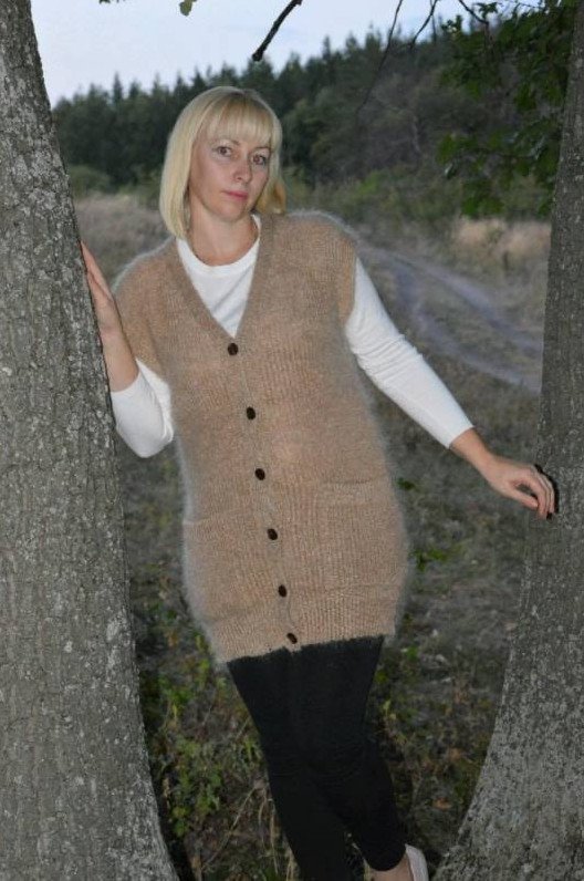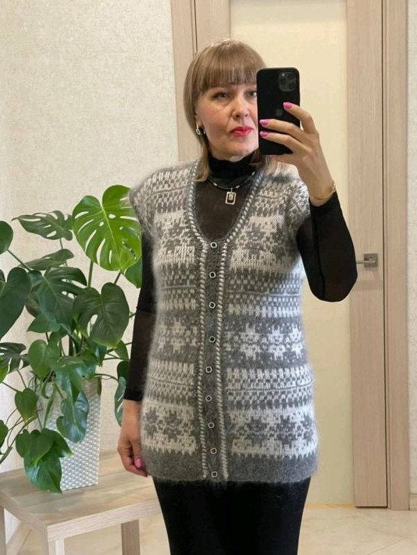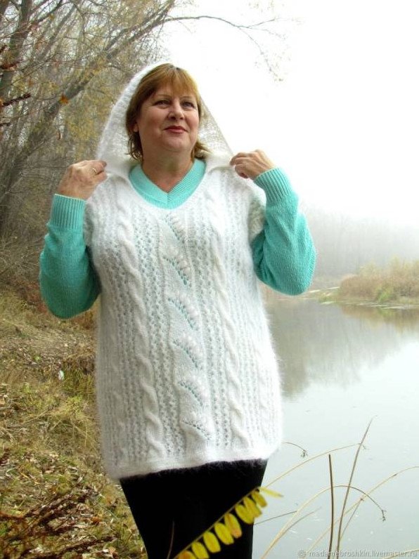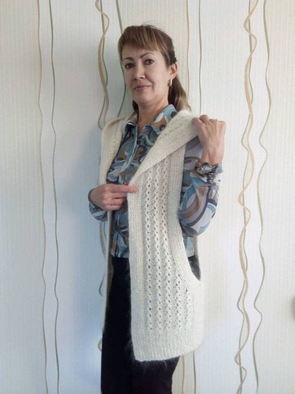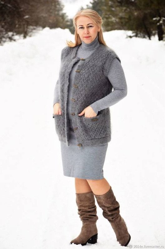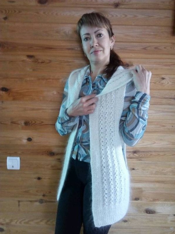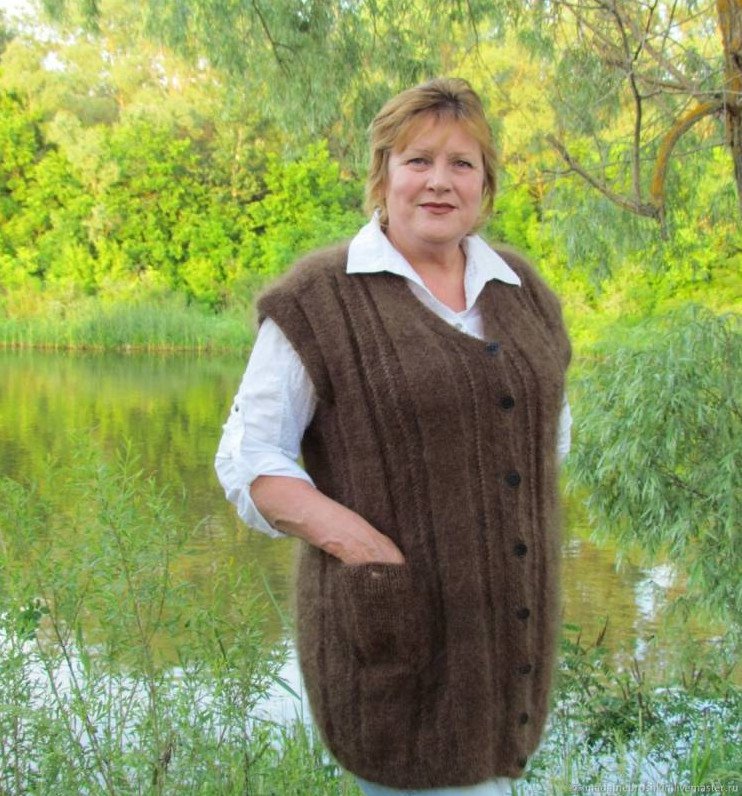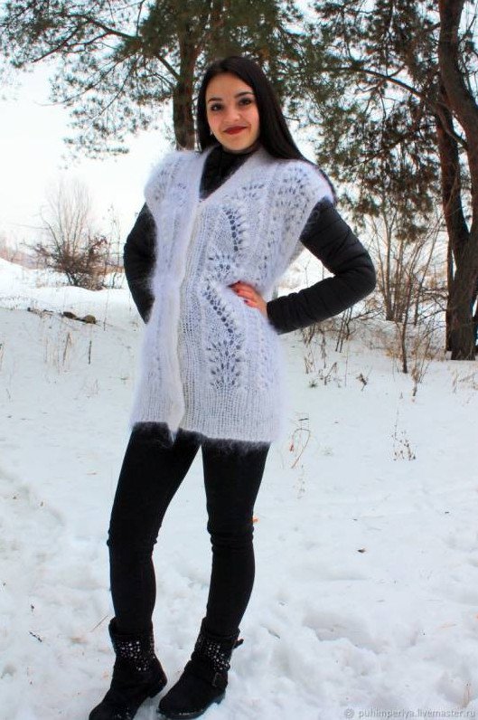 Купить вязаную пуховую женскую жилетку в Волжском.