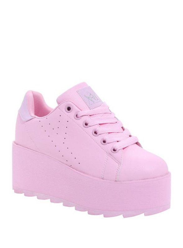 Розовые кроссовки на платформе.