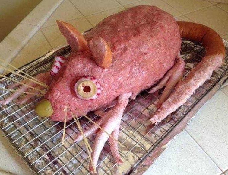 Блюдо в виде крысы на новый год.
