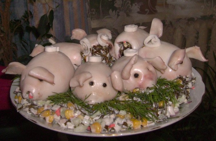 Блюда в виде поросенка.