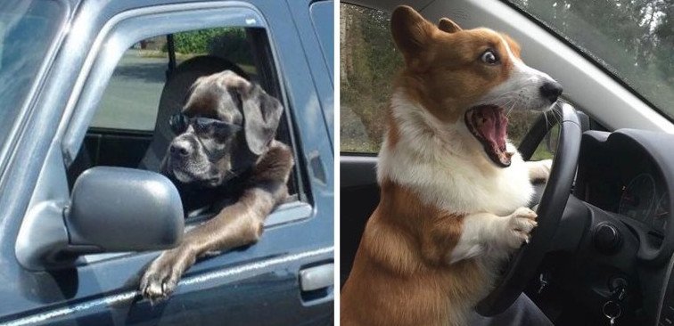 Забавные собаки за рулем.