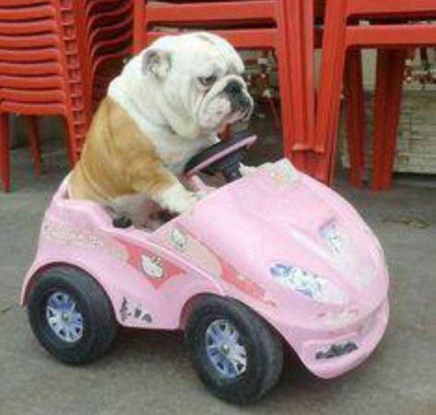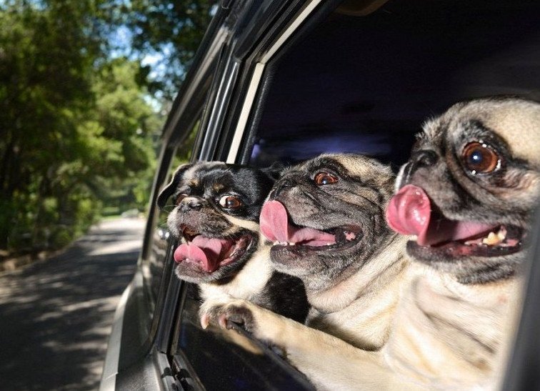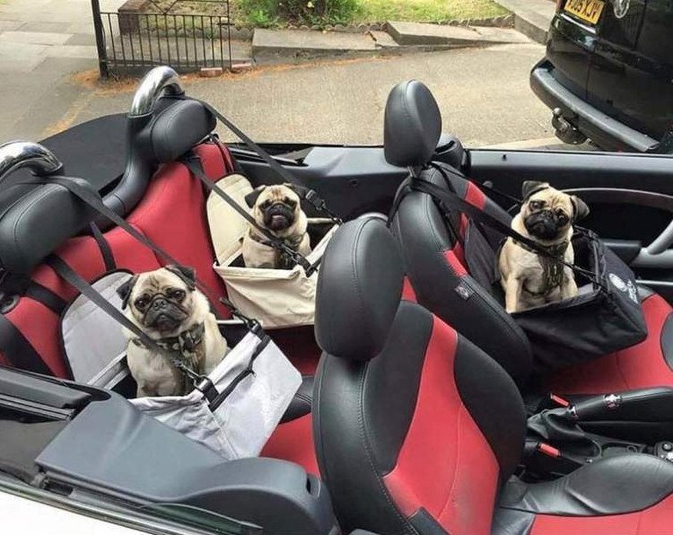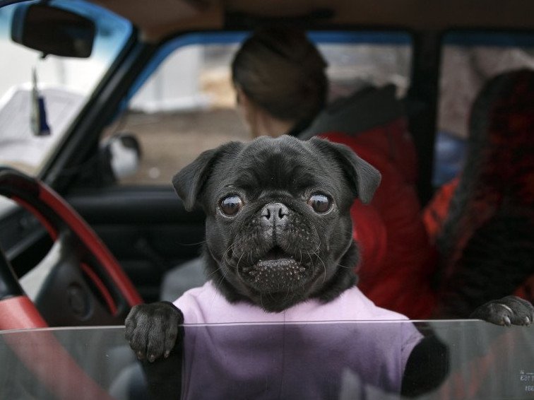 Мопс за рулем.