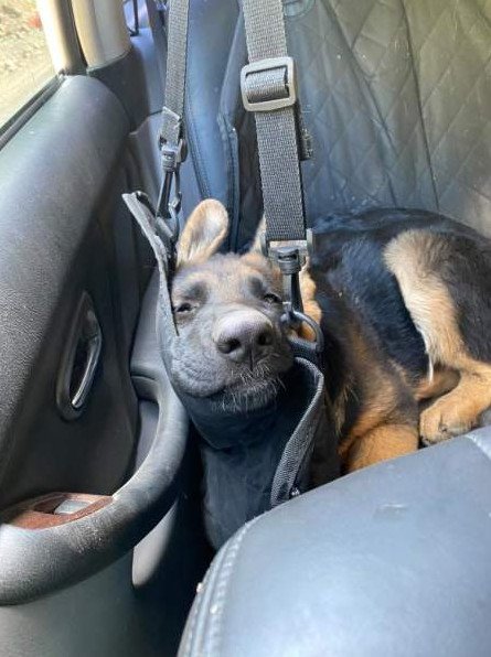 Везут собаку в машине.