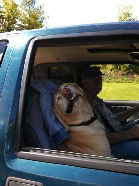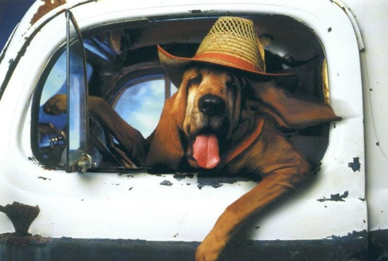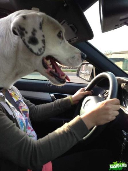 Юмор собака за рулем.