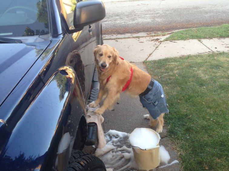 Собака шофер.