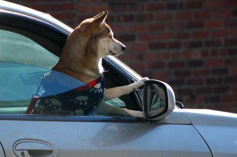 Собака в машине прикол.