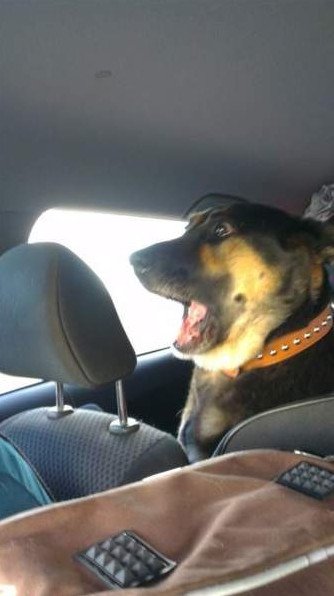 Немецкая овчарка в машине.