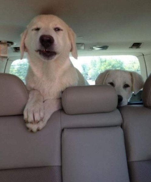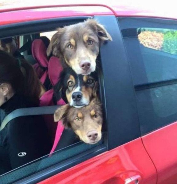 Милые звериные в машине.