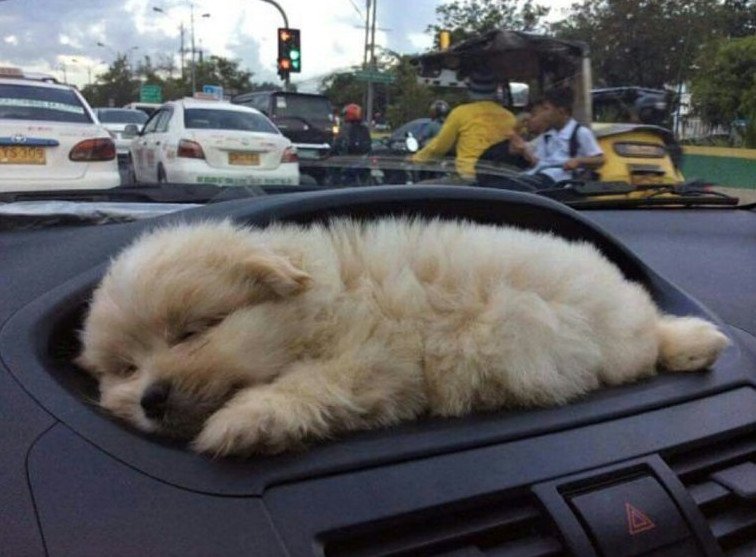 Щенок в машине.