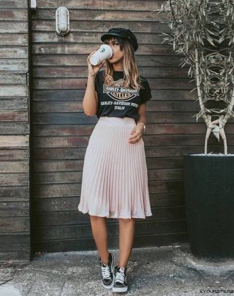 Плиссированная юбка с кедами.