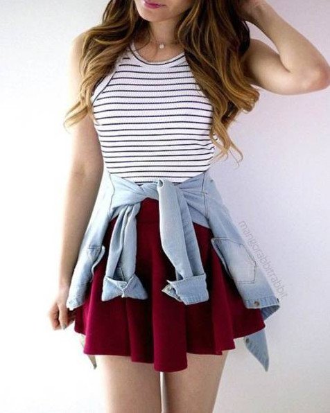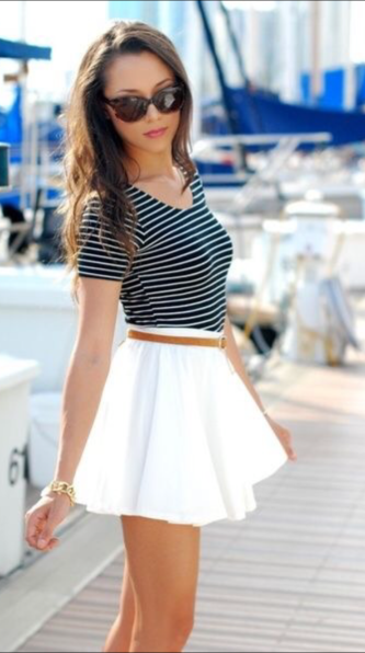Сочетание тельняшки с юбкой.