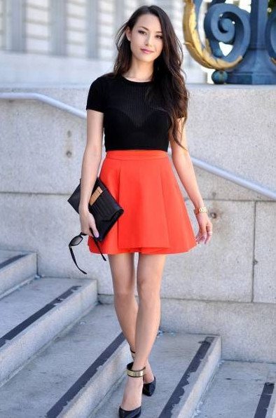 Красивая девушка в красной юбке.