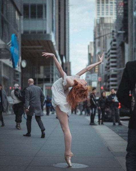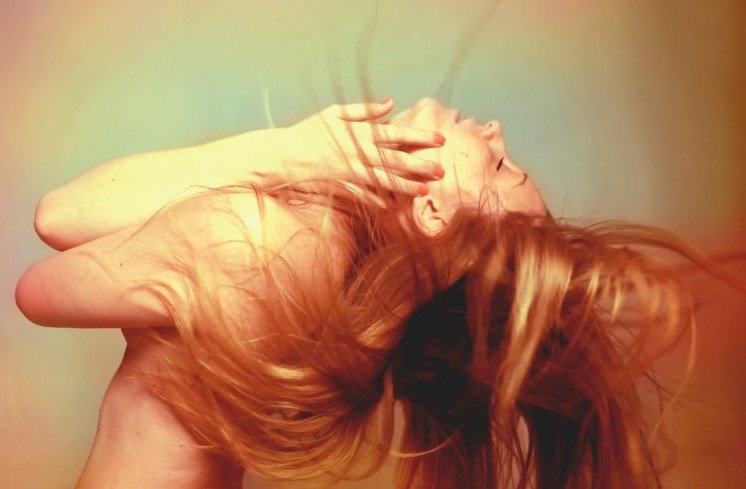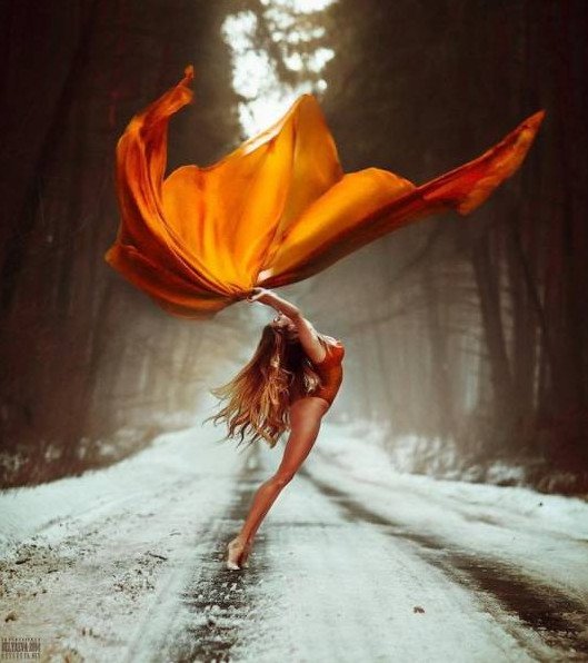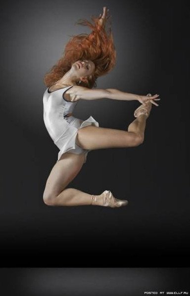 Танцующая рыжеватая девушка.