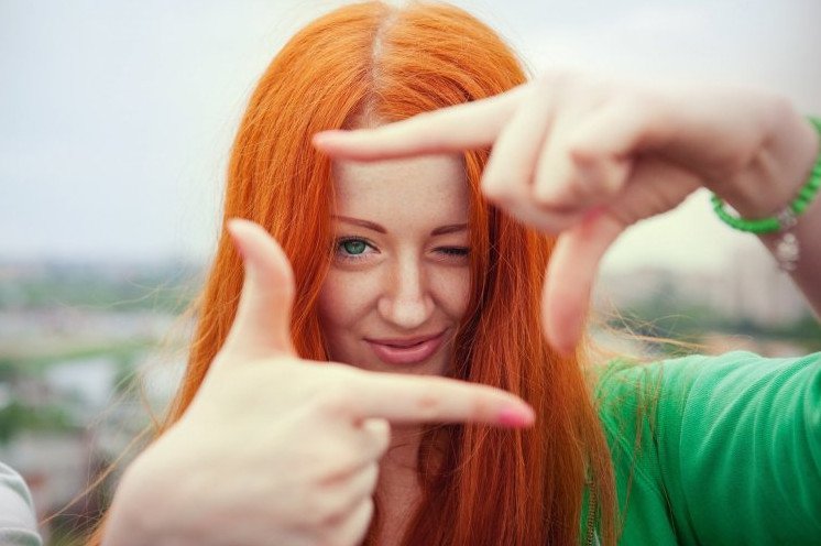 Счастливая рыжеватая девушка.