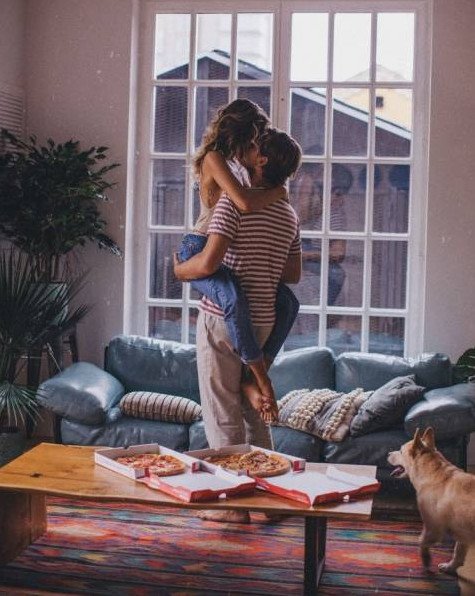 Влюбленные в квартире.