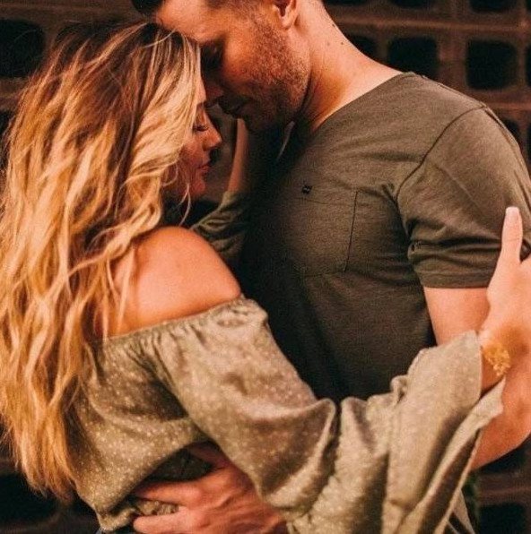 Блондиночка обымает мужчину.