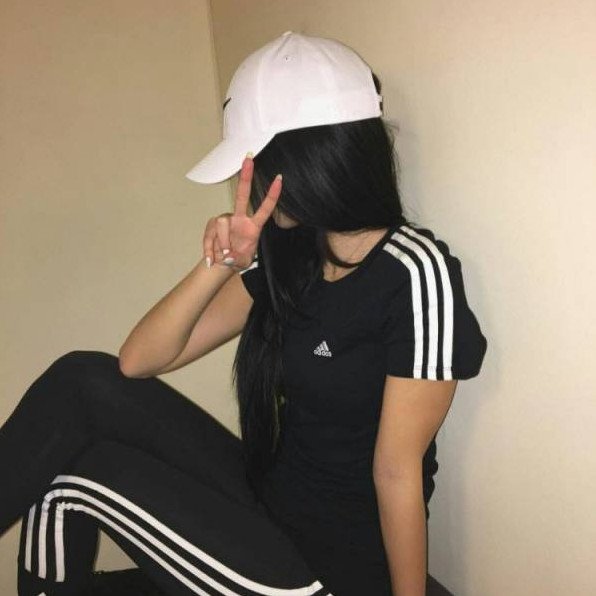 Красивая девушка в черной кепке без лица.