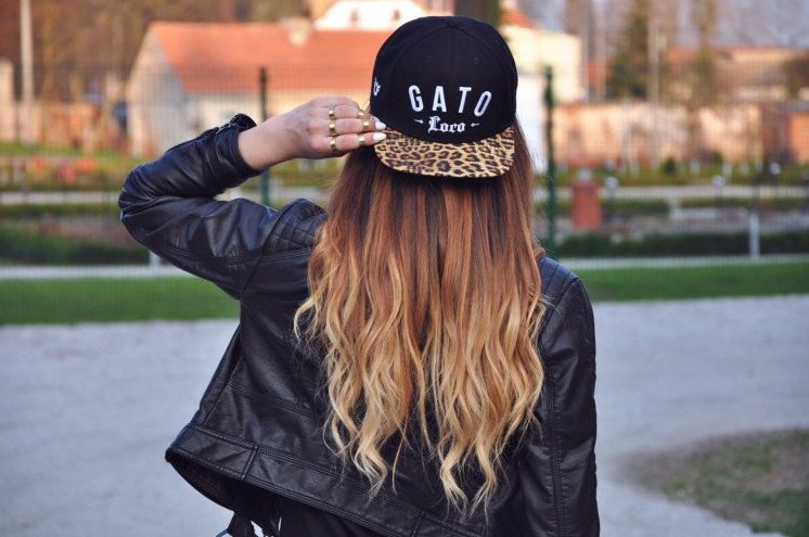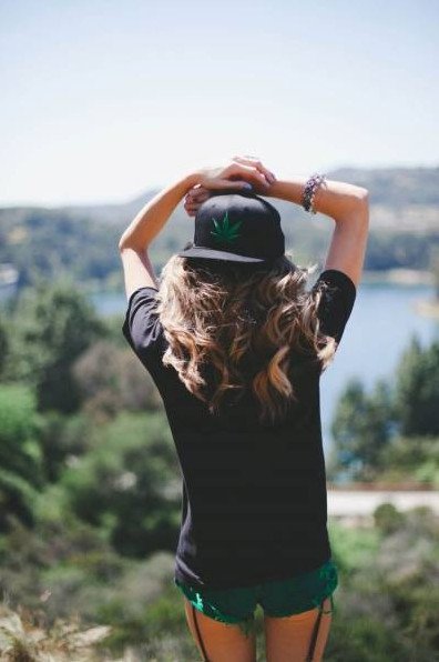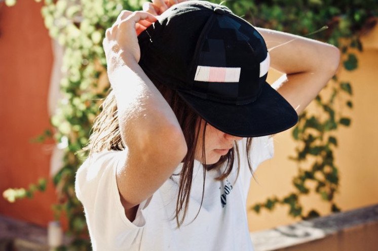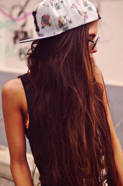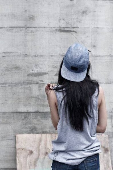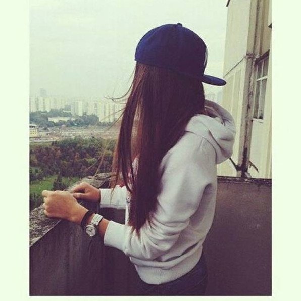 Красивая девушка в кепке со спины.