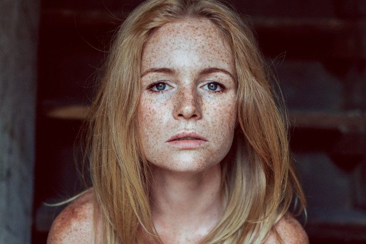Фотопортрет восхитительные женщины с веснушками.