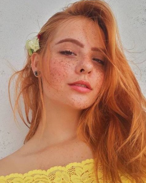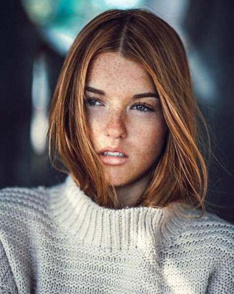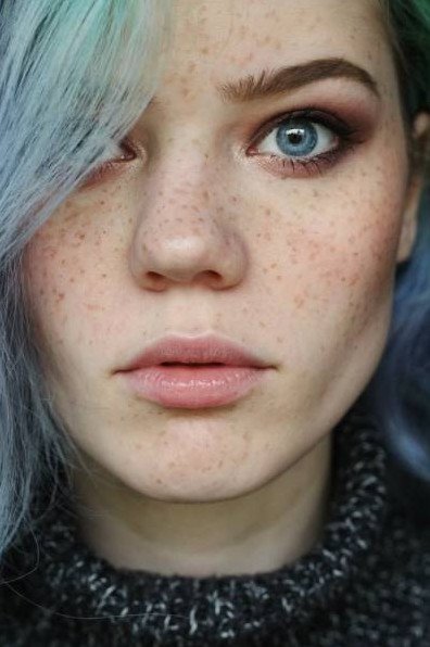 Розовые волосы с веснушками.