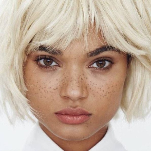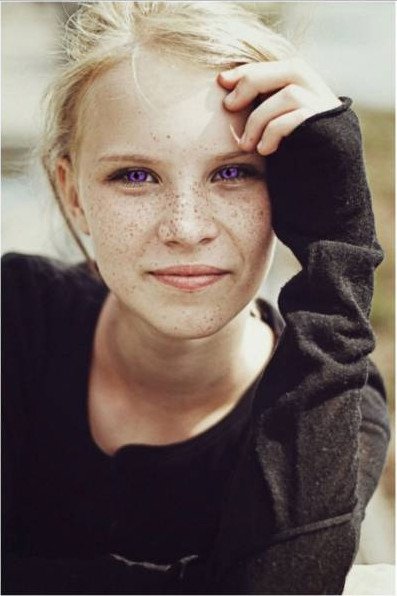 Сара Мари карда с белыми волосами без веснушек.