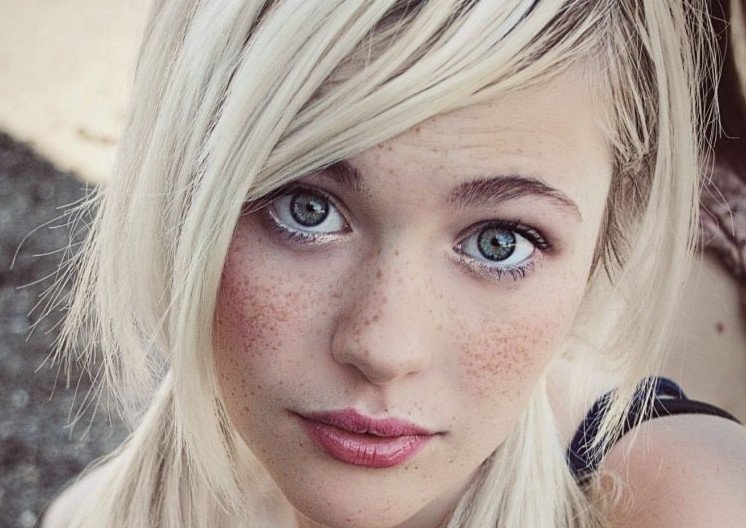 Девушка с веснушками блондиночка.