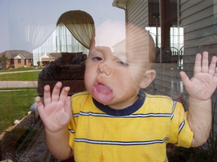 Прислонился носом к стеклу.